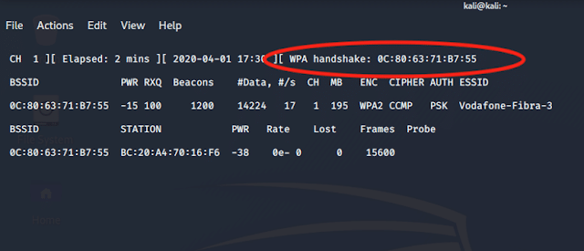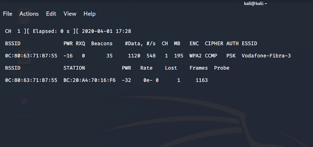 Il passo successivo e quello di attendere e intercettare il giusto pacchetto che interagisce con il dispositivo connesso alla rete (“STATION”) per poter velocizzare questa procedura innanzitutto ci dovrà essere collegato almeno un dispositivo alla rete, il passo che andremo a fare sarà quello d’intercettare il wpa handshake che sarebbe il pacchetto che poi servirà a eseguire il nostro attacco brute-force.