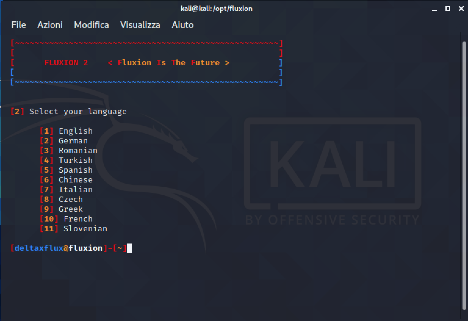 In questo passaggio dobbiamo selezionare la lingua che vogliamo utilizzare durante questo attacco. Impostiamo il numero 7 in italiano e premiamo invio