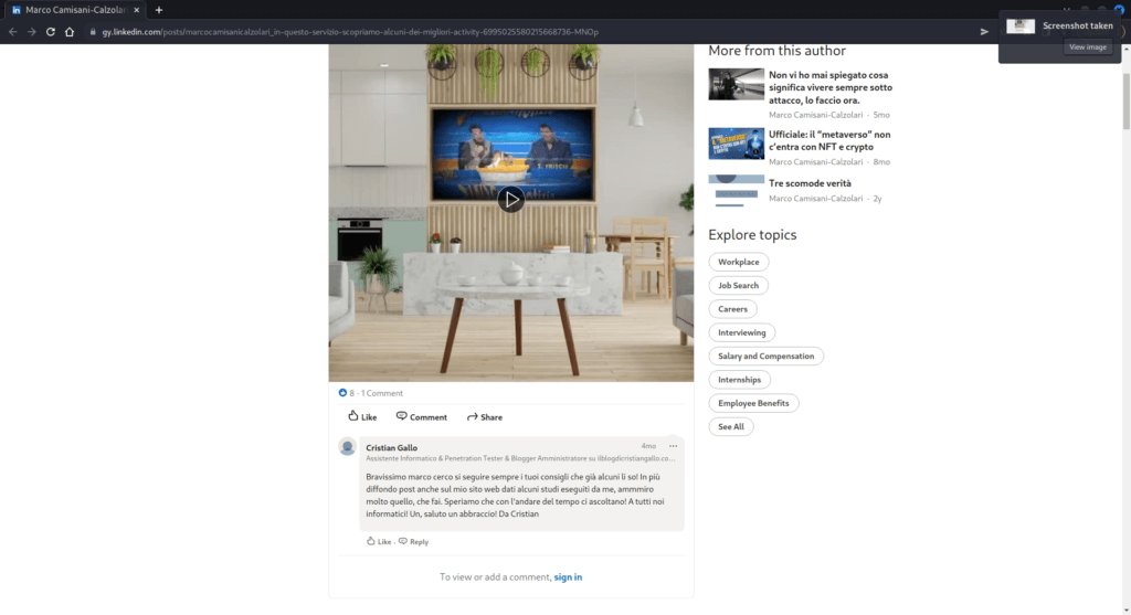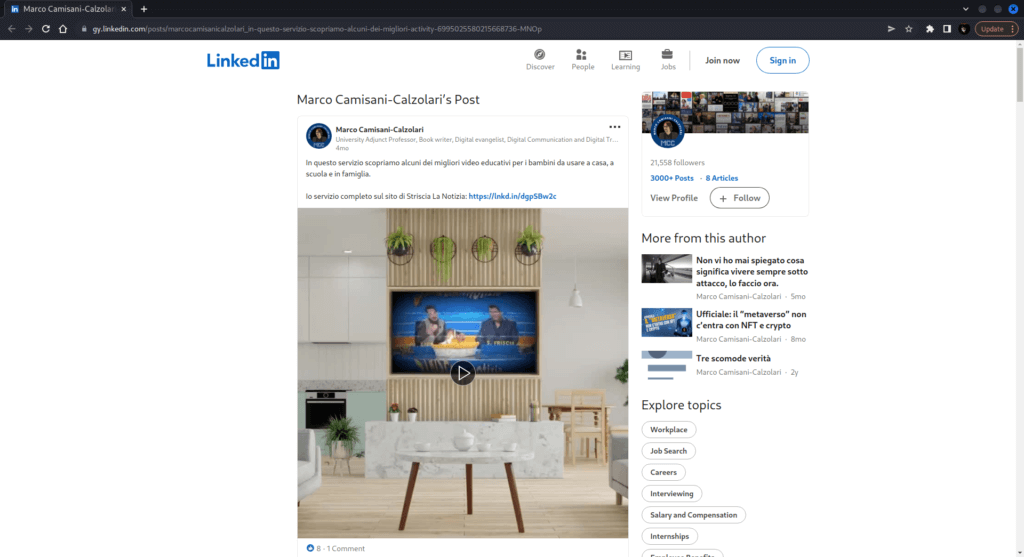 Alla fine su determinate ricerche appare un profilo Linkedin di Marco Camisani Calzolari dove io avevo commentato un suo post.