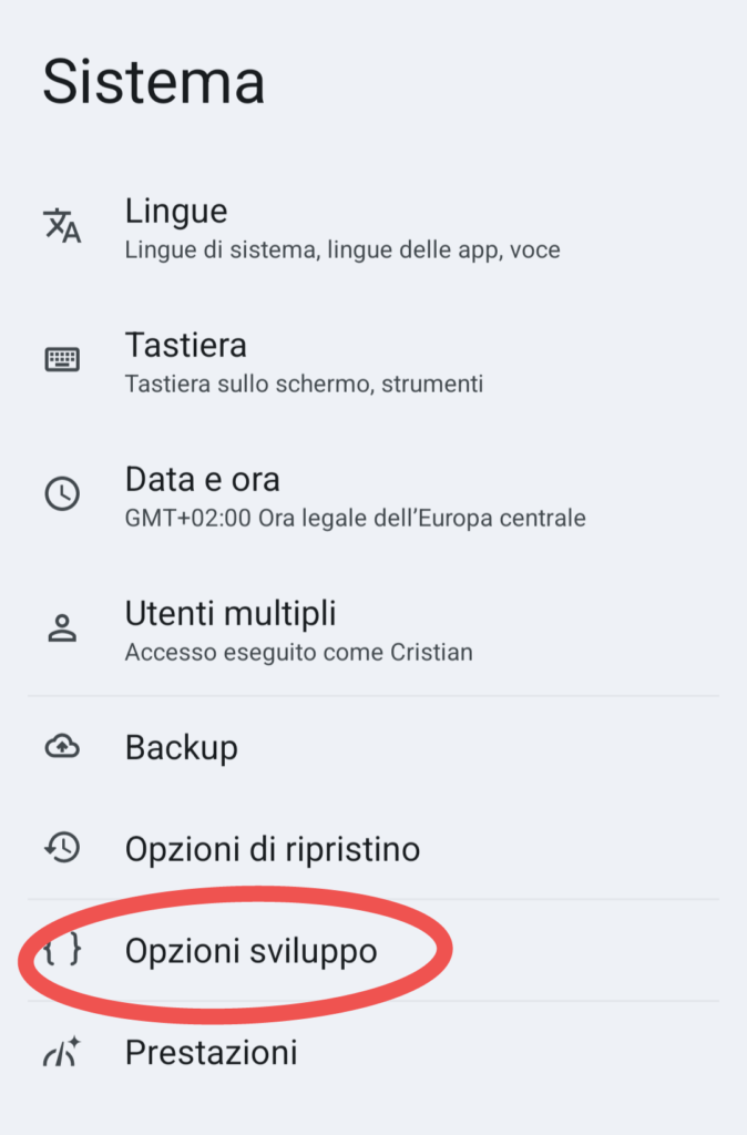 Tocca 7 volte per attivare le Opzioni sviluppatore.