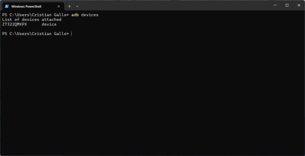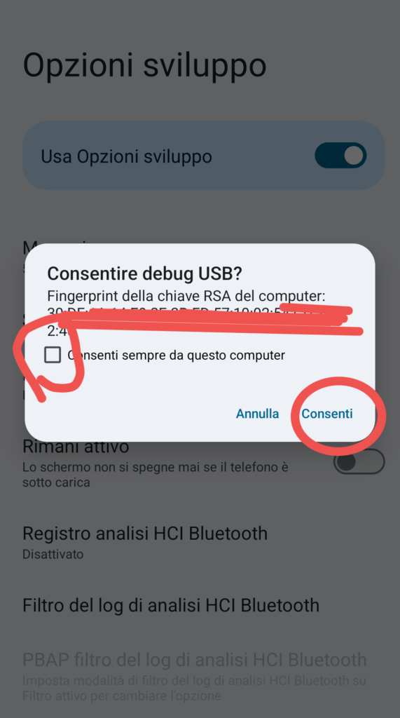 Per verificare che il dispositivo sia riconosciuto. Confermate sullo smartphone il debug USB.
