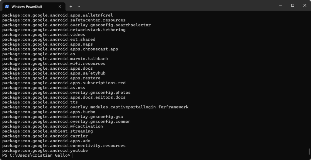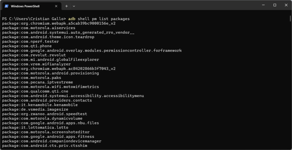 Usa questo comando per visualizzare l’elenco delle app installate: