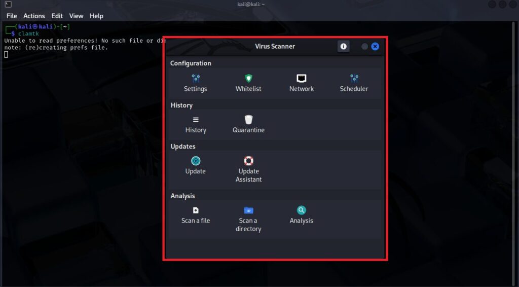 ClamTK è il front-end grafico per ClamAV. Pensato per utenti desktop, consente di eseguire scansioni, aggiornare il database dei virus e gestire le opzioni senza usare il terminale.