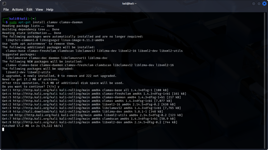 sudo apt-get install clamav clamav-daemon -yIl flag -y indica di installare con si il pacchetto direttamente senza dover aspettare se installare il pacchetto oppure no.