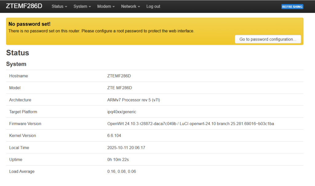 - Integrazione con LuCI: pieno supporto ai protocolli QMI e ModemManager tramite interfaccia web.