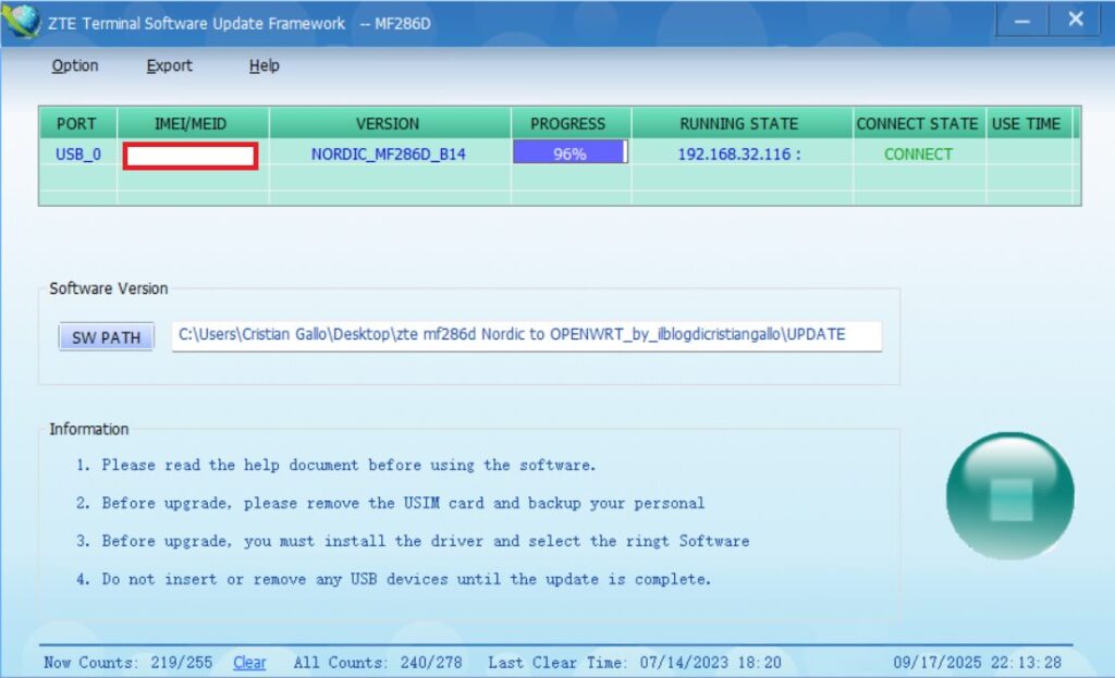 C:\Users\Cristian Gallo\Desktop\zte mf286d Nordic to OPENWRT_by_ilblogdicristiangallo\UPDATERicordatevi di cambiare il percorso rispetto il mio.