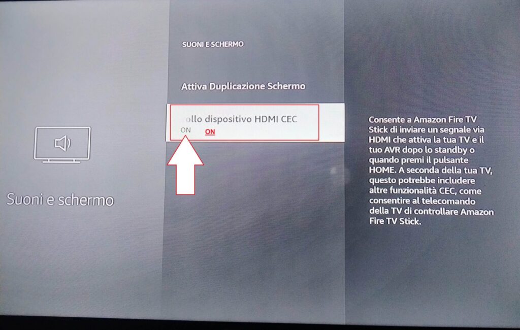 - Seleziona Suoni e Schermo → Controllo HDMI CEC.
