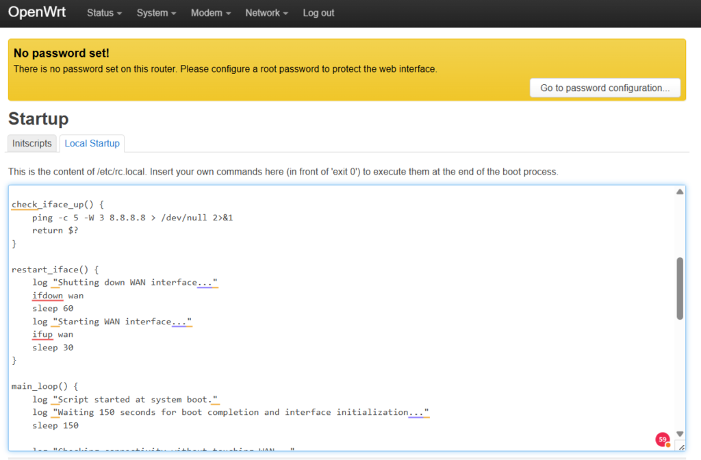 Anche se la rete funziona, lo script esegue ogni 3 ore un reset “programmato” dell’interfaccia WAN per evitare problemi futuri.