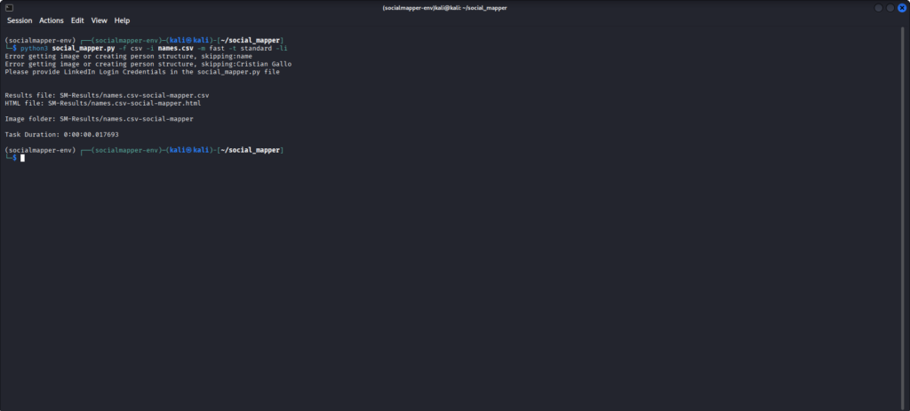 python3 social_mapper.py -f csv -i names.csv -m fast -t standard -li
