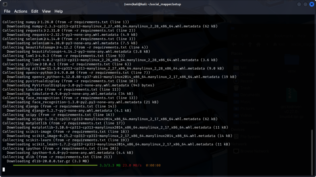 Questo evita l’errore externally-managed-environment che Kali blocca per motivi di sicurezza.