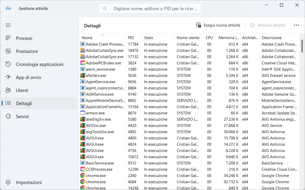 - Ctrl + Shift + Esc → <<Gestione attività>>