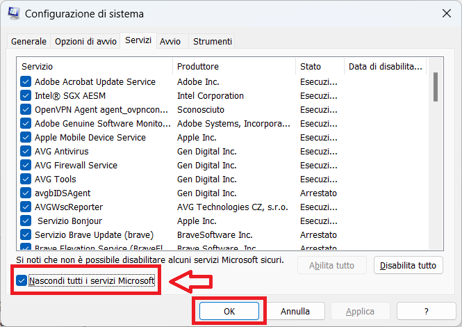 - Disattiva quelli non essenziali (es. Adobe, Google Update, ecc.)