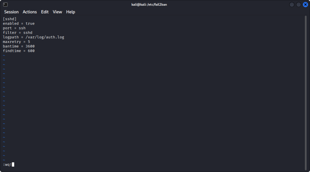 findtime = 600enabled: attiva la protezione per SSH.