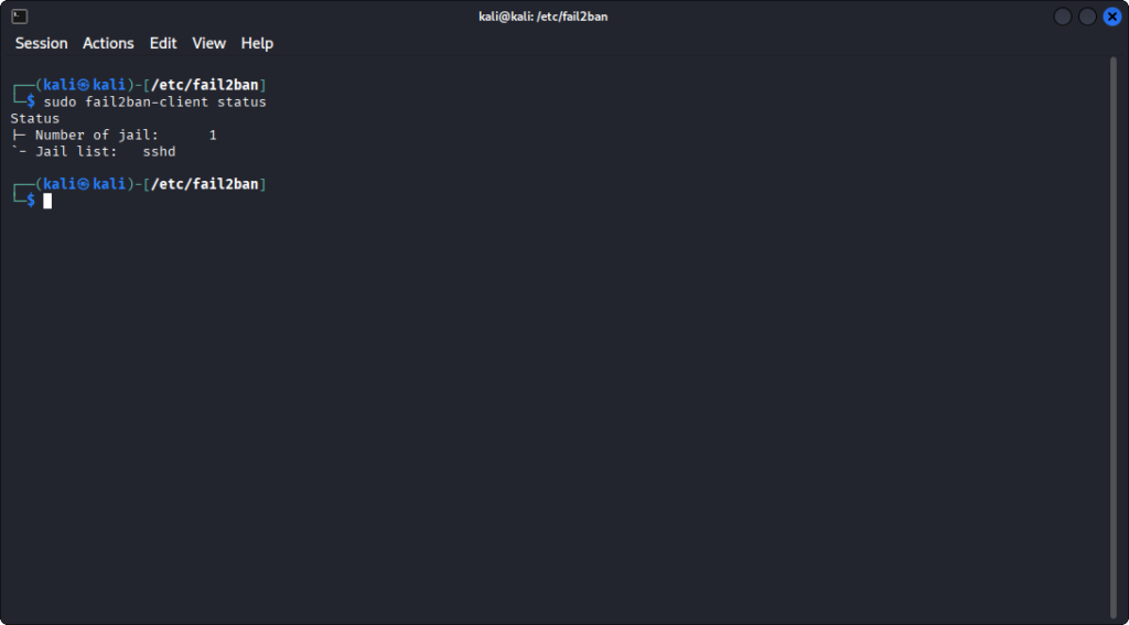 Jail list: sshd → la jail attiva è quella che monitora i tentativi di accesso SSH.