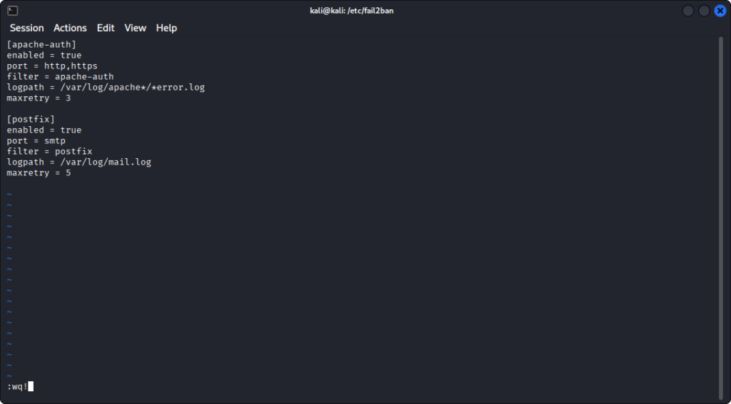 cd /etc/fail2ban/Successivamente usiamo il comando vi: