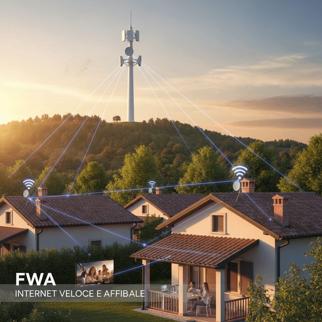 La FWA (Fixed Wireless Access) è una connessione wireless che sfrutta antenne radio 4G/5G per portare internet nelle zone non raggiunte dalla fibra. Sulla carta sembra fantastica: “fino a 300 Mbps”, “bassa latenza”, “prestazioni simili alla fibra”.