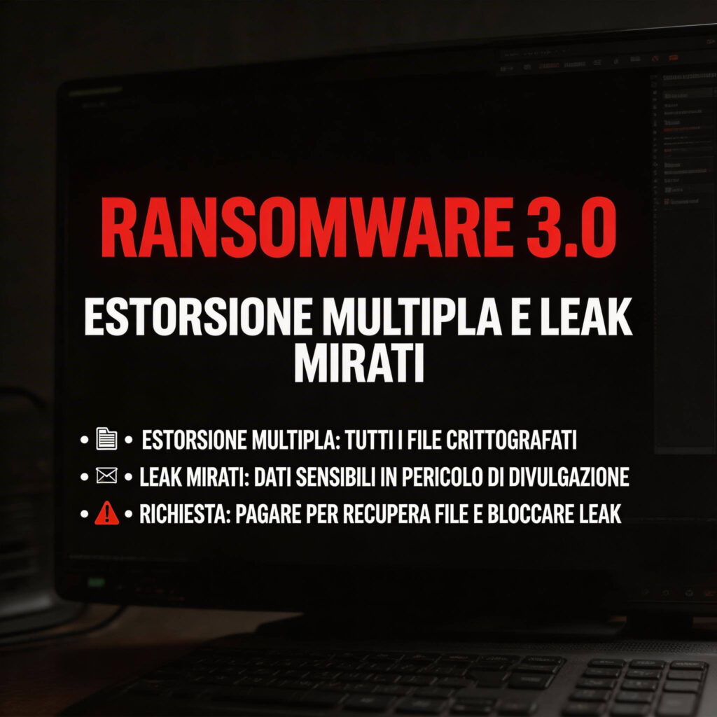 - estorsione quadrupla (cifratura, leak, DDoS, contatto diretto con clienti)